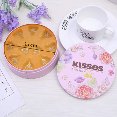 Caja de lata redonda reciclada para galletas y dulces de chocolate con bandeja interior de color amarillo